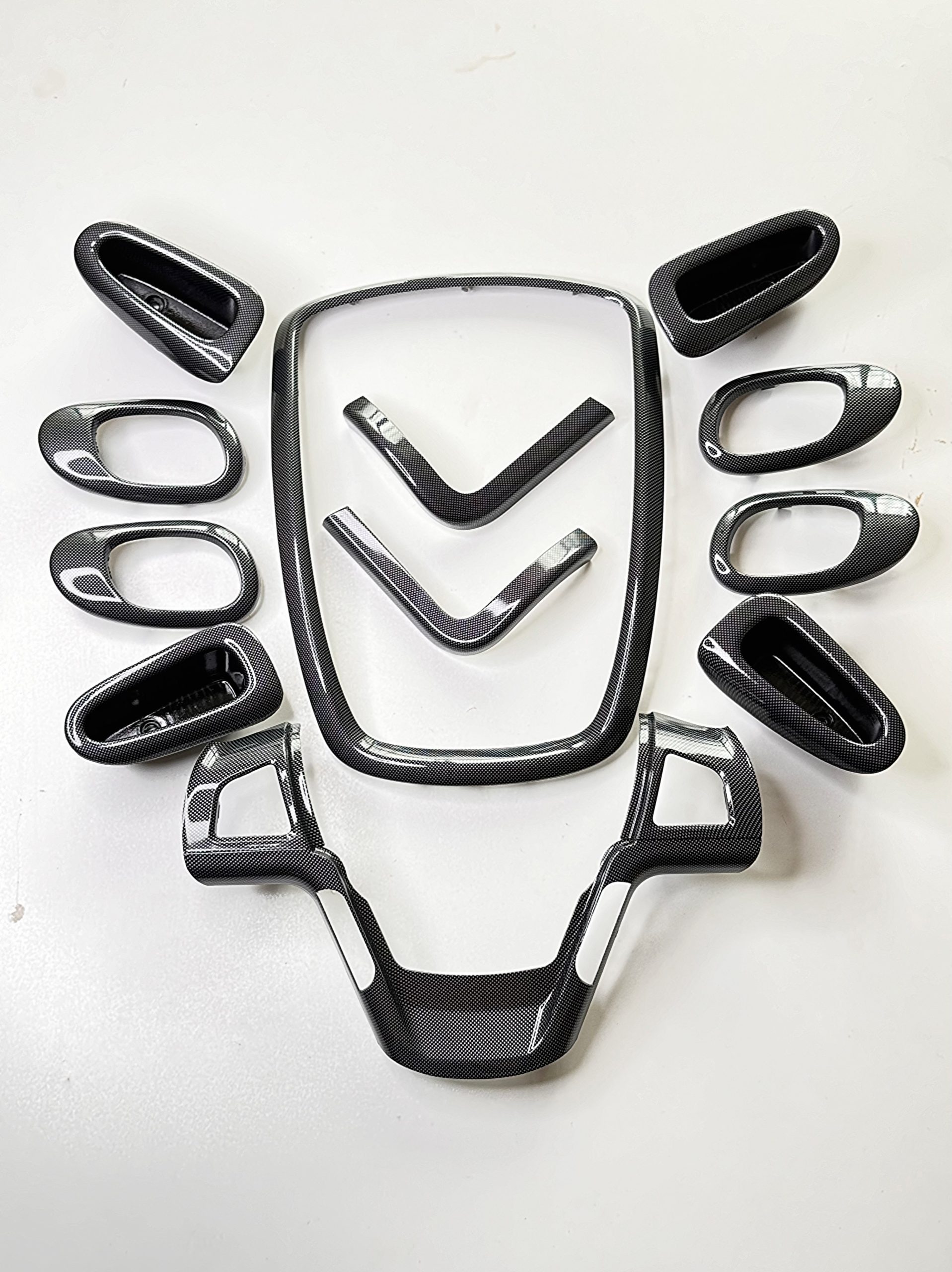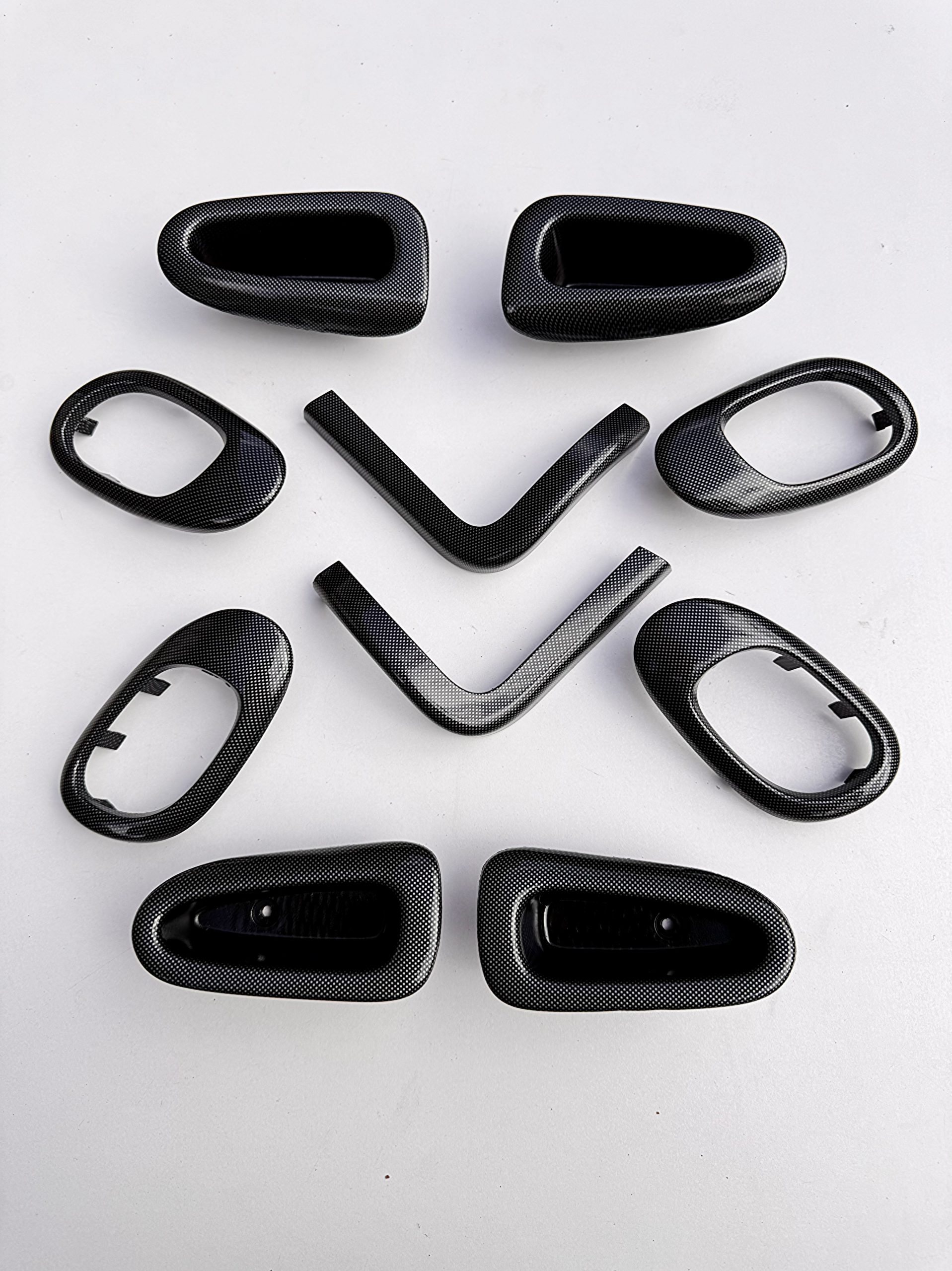 12 تیکه (زه وسط، زه گوشه چپ و راست، اینترفیس فرمان، قاب دستگیره و کاسه ایی درب جلو و عقب)